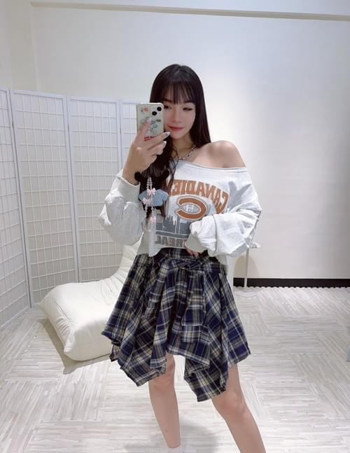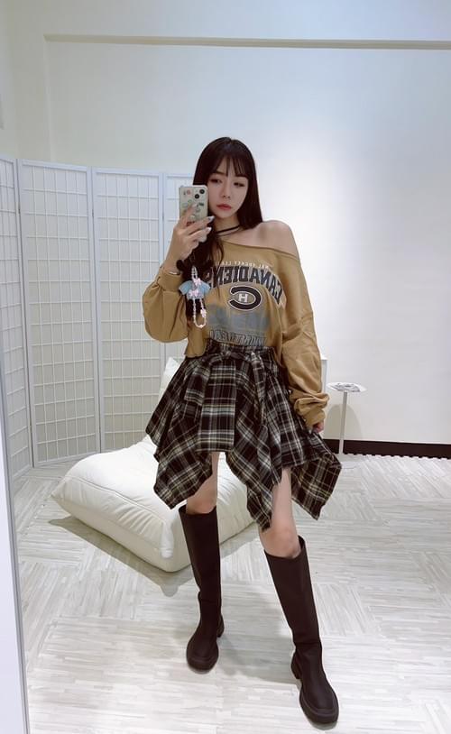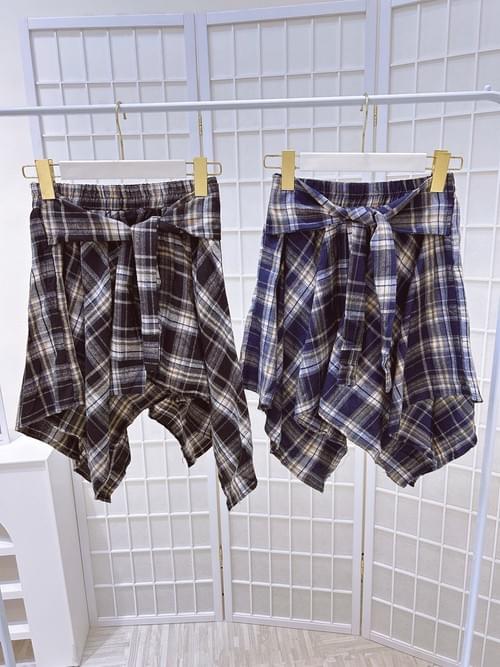 綁帶格子裙